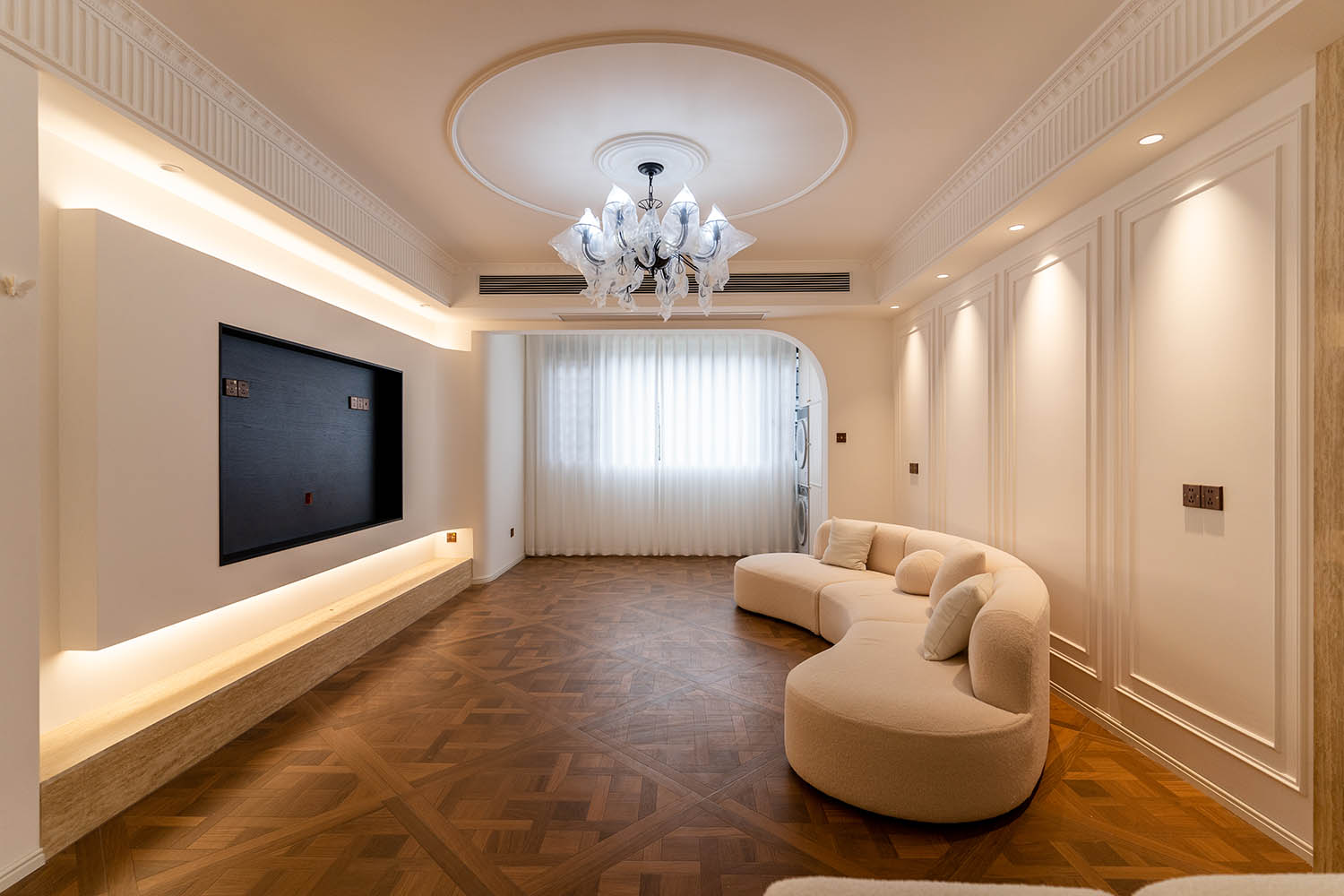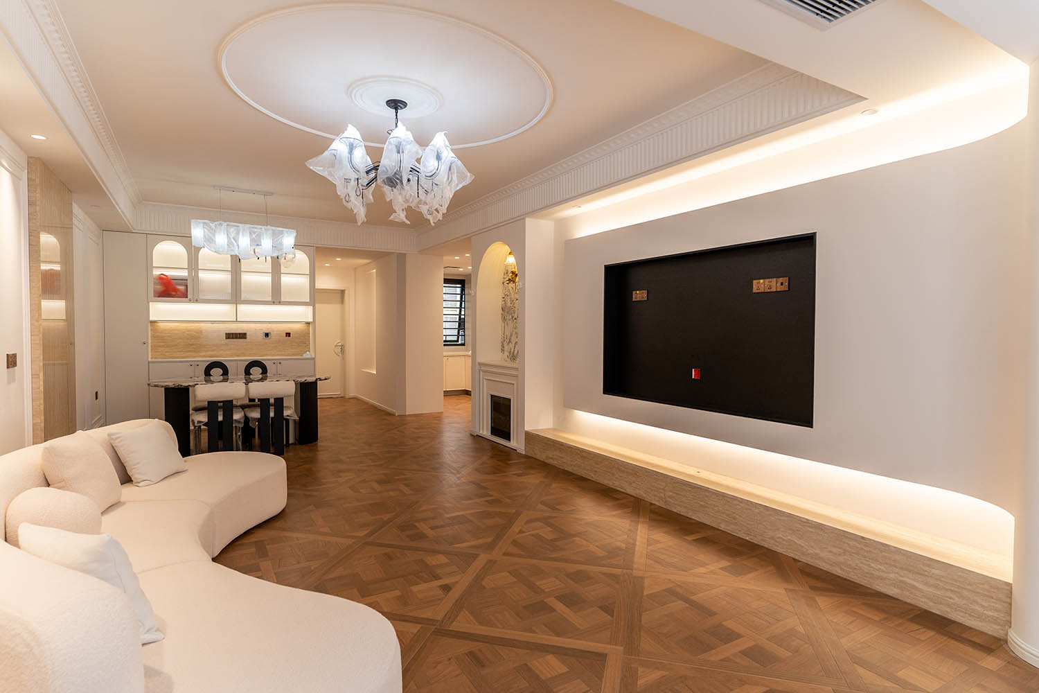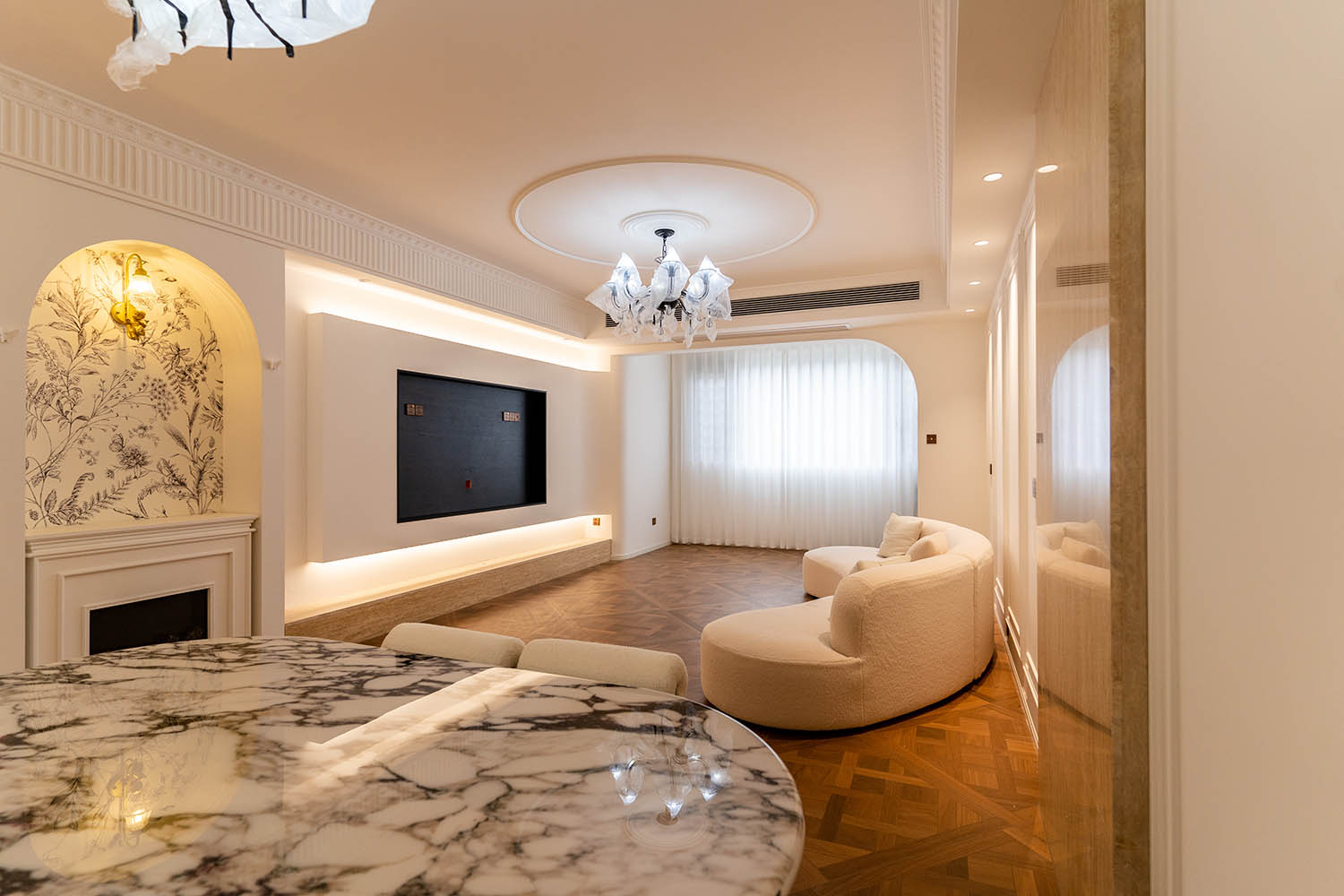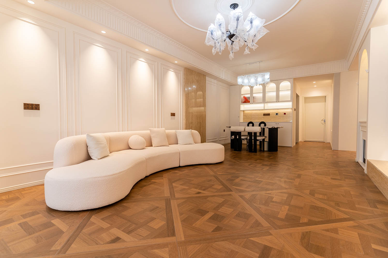 法式風格以其優(yōu)雅的線條、精致的細節(jié)和浪漫的氛圍,成為高端家居設計的經(jīng)典選擇。它巧妙地將古典美學與現(xiàn)代生活需求相結合,創(chuàng)造出既有藝術感又實用舒適的居住環(huán)境。 對于133平米的戶型,法式風格能充分發(fā)揮空間優(yōu)勢,通過對稱布局、精致雕花和優(yōu)雅配色,打造出充滿貴族氣質(zhì)與藝術氛圍的理想居所。 設計理念與空間基調(diào) 玫瑰御園133平米法式風格的核心在于營造 “優(yōu)雅、浪漫、精致” 的生活氛圍。整體空間以淺色調(diào)為基底,采用米白、香草色、淺灰等優(yōu)雅色調(diào)作為主調(diào),為空間奠定明亮高雅的基調(diào)。