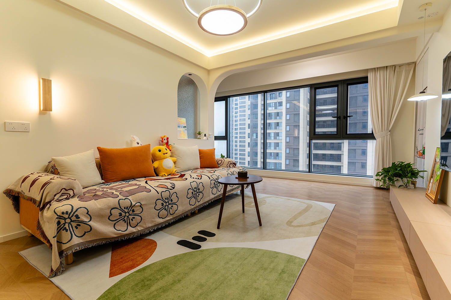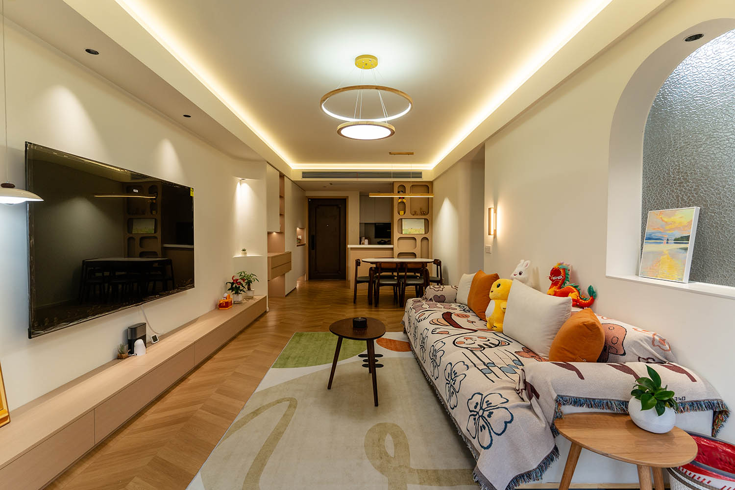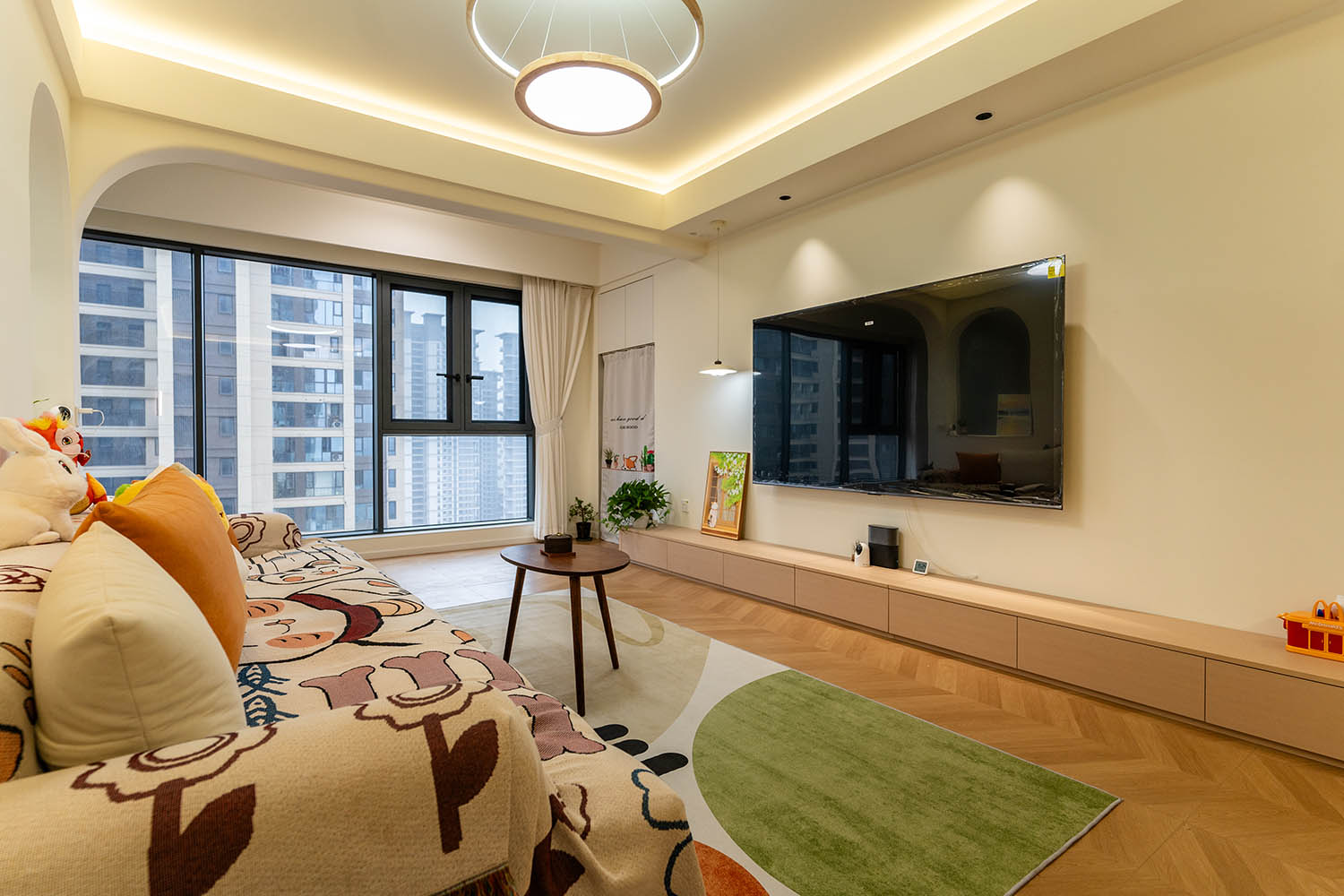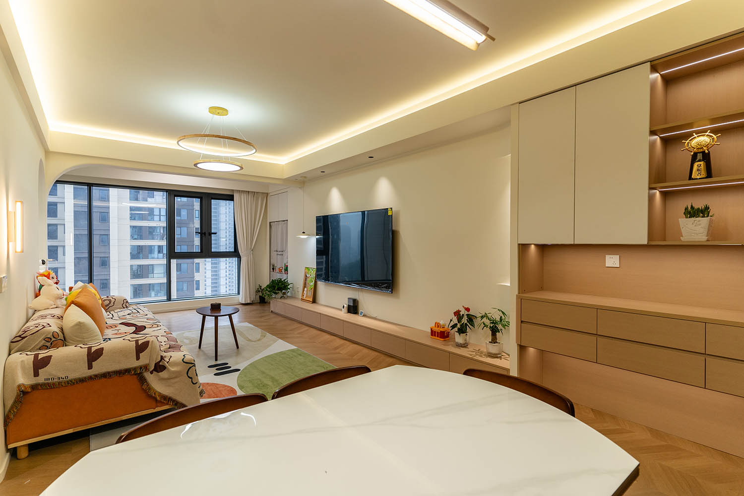 設(shè)計(jì)理念與空間基調(diào) 原木奶油風(fēng)以低飽和度色彩、自然材質(zhì)與柔和線條為核心,在建發(fā)央著100㎡的戶型中,設(shè)計(jì)師通過奶油色基底與原木元素的融合,營(yíng)造出溫暖治愈的居家氛圍。整體風(fēng)格遵循“簡(jiǎn)而不空”的原則,硬裝以簡(jiǎn)約的幾何造型與流暢的動(dòng)線為主,軟裝則強(qiáng)調(diào)材質(zhì)的天然感與舒適性,在實(shí)用性與美學(xué)之間找到完美平衡。 建發(fā)央著100㎡的原木奶油風(fēng),通過色彩、材質(zhì)與光影的巧妙平衡,將自然治愈感融入日常。既以開放式布局與智能收納滿足了現(xiàn)代生活的高效需求,又以弧形曲線與柔軟織物撫慰居者身心,真正詮釋了 “簡(jiǎn)約中見細(xì)節(jié),溫柔中藏高級(jí)” 的居住理想。