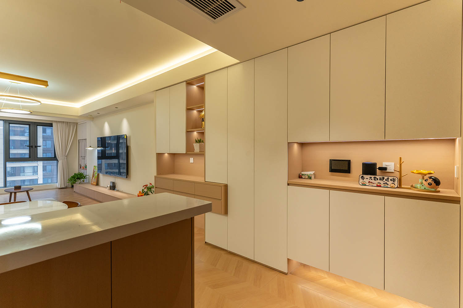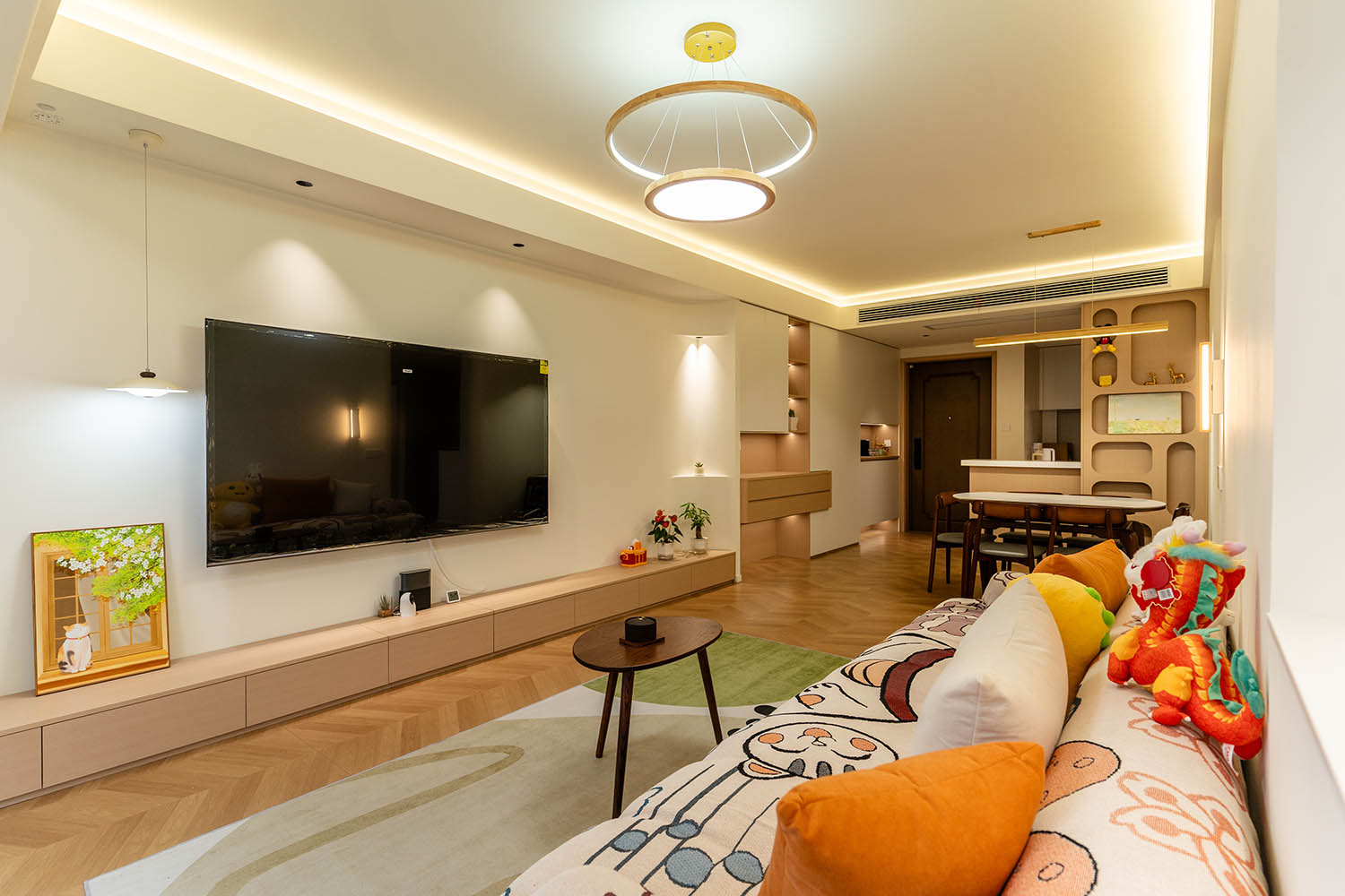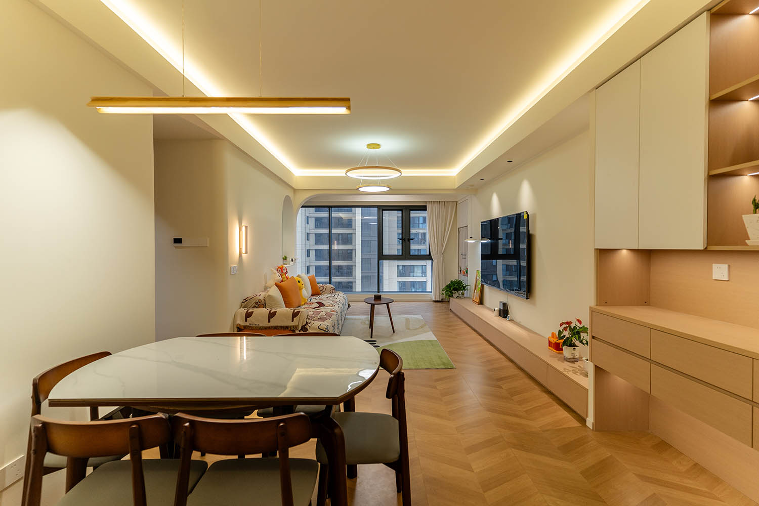 設(shè)計(jì)理念與空間基調(diào) 原木奶油風(fēng)以低飽和度色彩、自然材質(zhì)與柔和線條為核心,在建發(fā)央著100㎡的戶型中,設(shè)計(jì)師通過奶油色基底與原木元素的融合,營(yíng)造出溫暖治愈的居家氛圍。整體風(fēng)格遵循“簡(jiǎn)而不空”的原則,硬裝以簡(jiǎn)約的幾何造型與流暢的動(dòng)線為主,軟裝則強(qiáng)調(diào)材質(zhì)的天然感與舒適性,在實(shí)用性與美學(xué)之間找到完美平衡。 建發(fā)央著100㎡的原木奶油風(fēng),通過色彩、材質(zhì)與光影的巧妙平衡,將自然治愈感融入日常。既以開放式布局與智能收納滿足了現(xiàn)代生活的高效需求,又以弧形曲線與柔軟織物撫慰居者身心,真正詮釋了 “簡(jiǎn)約中見細(xì)節(jié),溫柔中藏高級(jí)” 的居住理想。