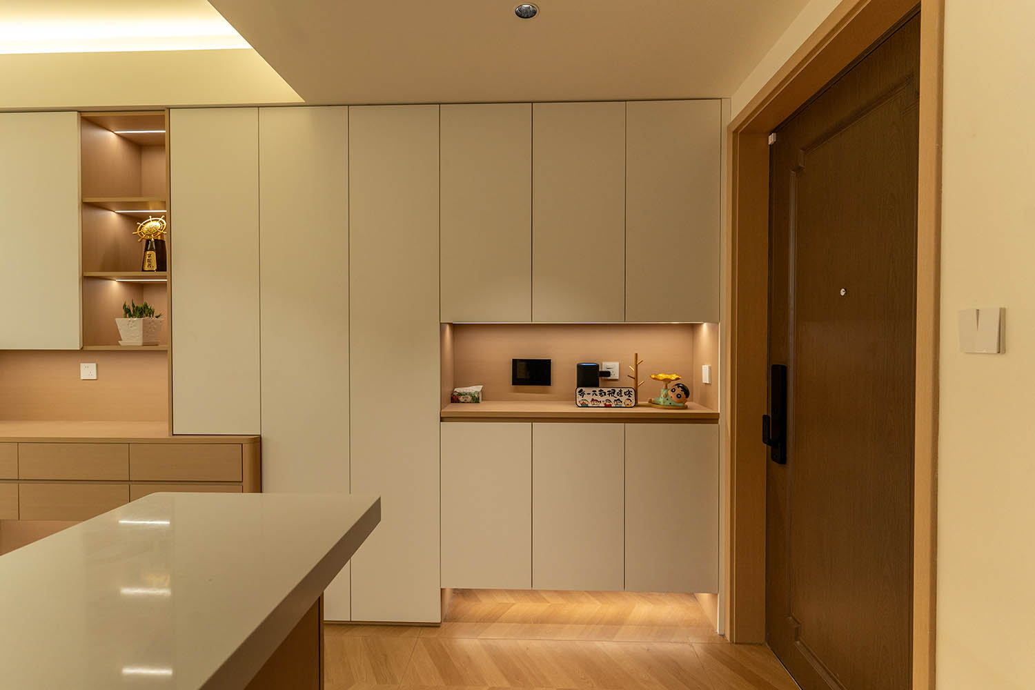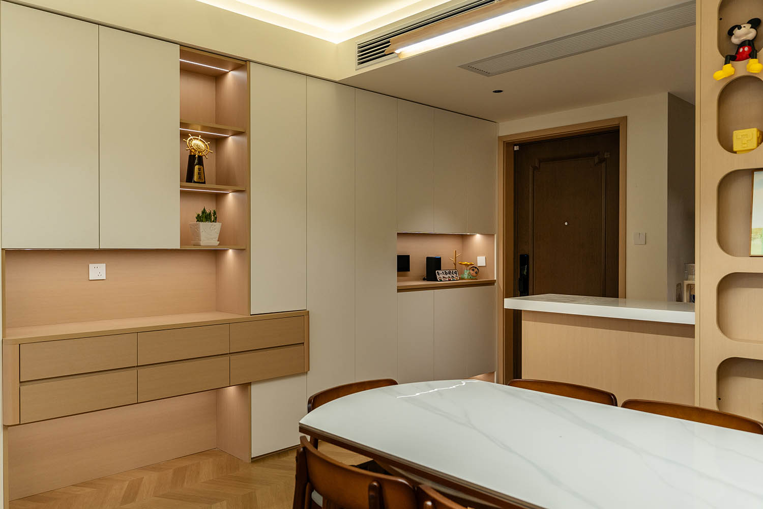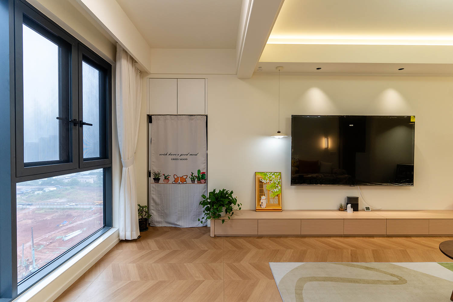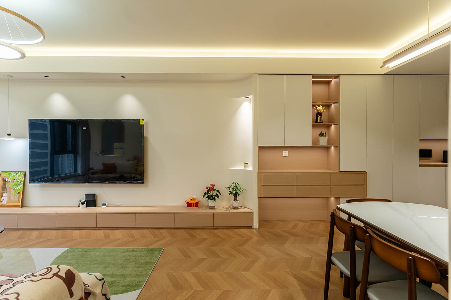 設(shè)計(jì)理念與空間基調(diào) 原木奶油風(fēng)以低飽和度色彩、自然材質(zhì)與柔和線條為核心,在建發(fā)央著100㎡的戶型中,設(shè)計(jì)師通過奶油色基底與原木元素的融合,營(yíng)造出溫暖治愈的居家氛圍。整體風(fēng)格遵循“簡(jiǎn)而不空”的原則,硬裝以簡(jiǎn)約的幾何造型與流暢的動(dòng)線為主,軟裝則強(qiáng)調(diào)材質(zhì)的天然感與舒適性,在實(shí)用性與美學(xué)之間找到完美平衡。 建發(fā)央著100㎡的原木奶油風(fēng),通過色彩、材質(zhì)與光影的巧妙平衡,將自然治愈感融入日常。既以開放式布局與智能收納滿足了現(xiàn)代生活的高效需求,又以弧形曲線與柔軟織物撫慰居者身心,真正詮釋了 “簡(jiǎn)約中見細(xì)節(jié),溫柔中藏高級(jí)” 的居住理想。