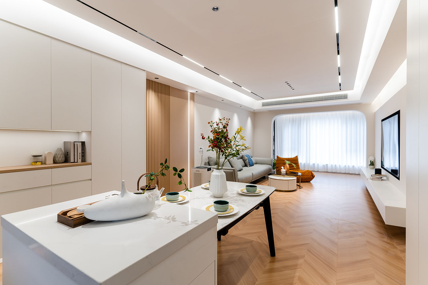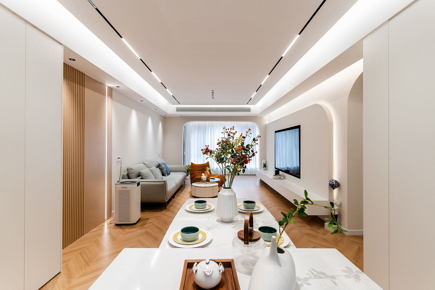 當(dāng)溫柔的奶油色系包裹整個(gè)空間,家便如同被注入一捧陽光,散發(fā)出綿密、柔軟而治愈的力量。 本案位于株洲未名1898小區(qū),為一套126平米的住宅。設(shè)計(jì)師以風(fēng)靡一時(shí)的現(xiàn)代奶油風(fēng)為基調(diào),巧妙融合柔和的曲線、溫潤的材質(zhì)與靈動(dòng)的光影,于現(xiàn)代理性的空間骨架中,注入恰到好處的溫柔與松弛感,最終打造出一個(gè)仿佛會(huì)呼吸的、能撫慰心靈的理想之家。 在這126平米的空間里,現(xiàn)代奶油風(fēng)展現(xiàn)的遠(yuǎn)不止于視覺上的柔和。它通過連貫的設(shè)計(jì)語言、對(duì)細(xì)節(jié)的溫柔處理以及對(duì)光影的極致運(yùn)用,成功地塑造了一個(gè)既能安放身體,又能療愈心靈的居住場(chǎng)所。它不張揚(yáng),卻擁有溫暖人心的強(qiáng)大力量,完美詮釋了何為“家的溫柔哲學(xué)”。