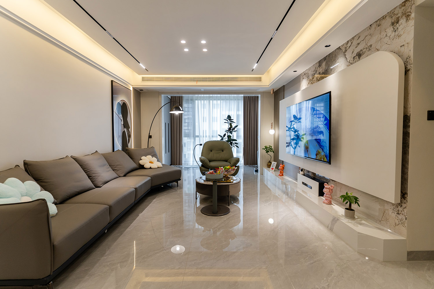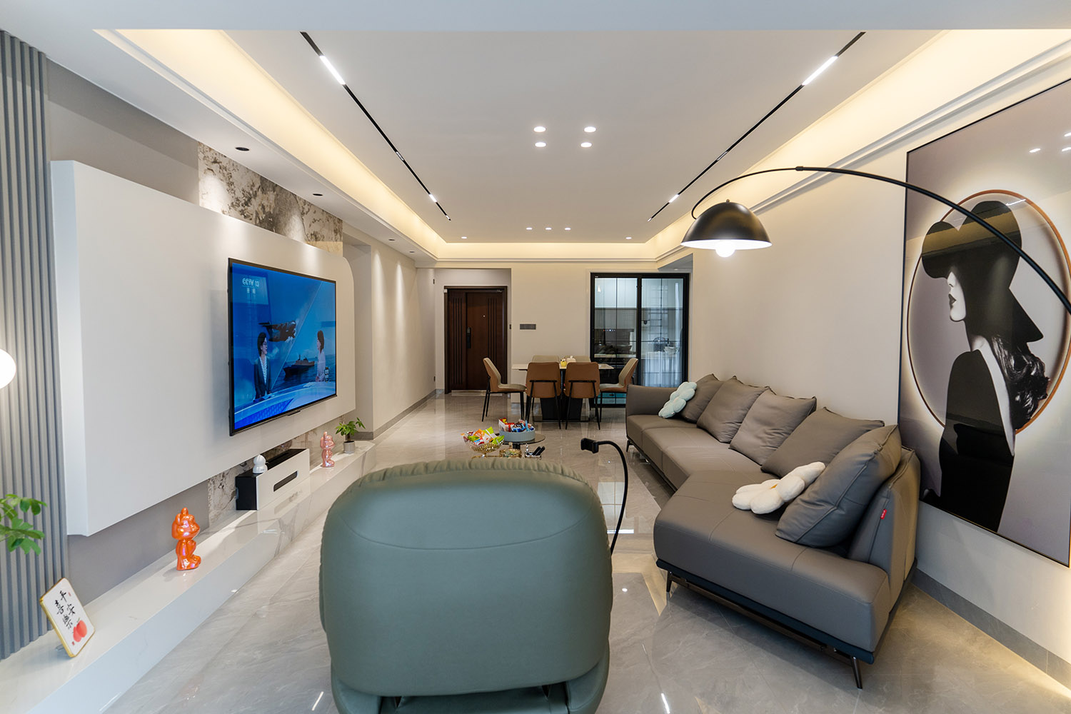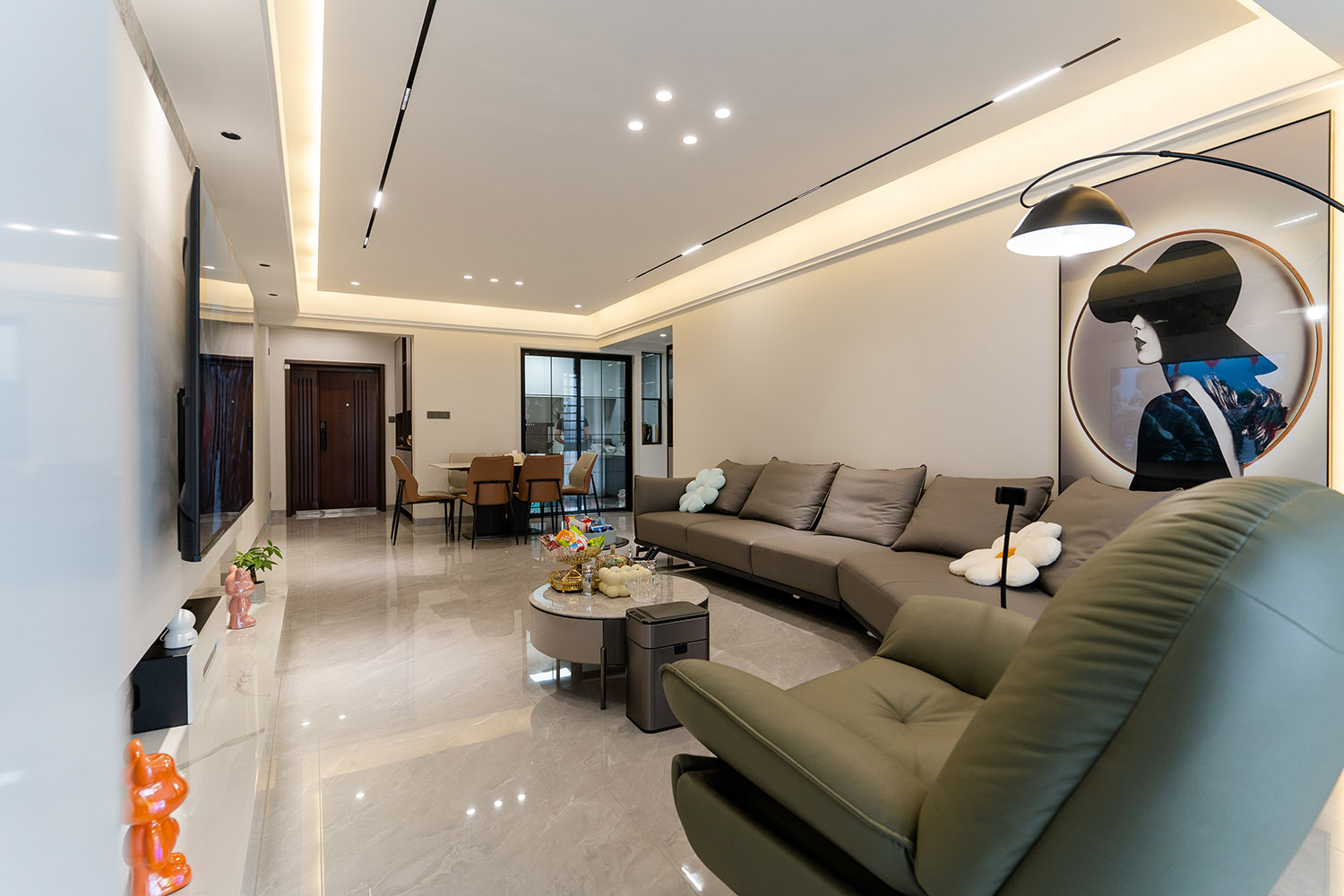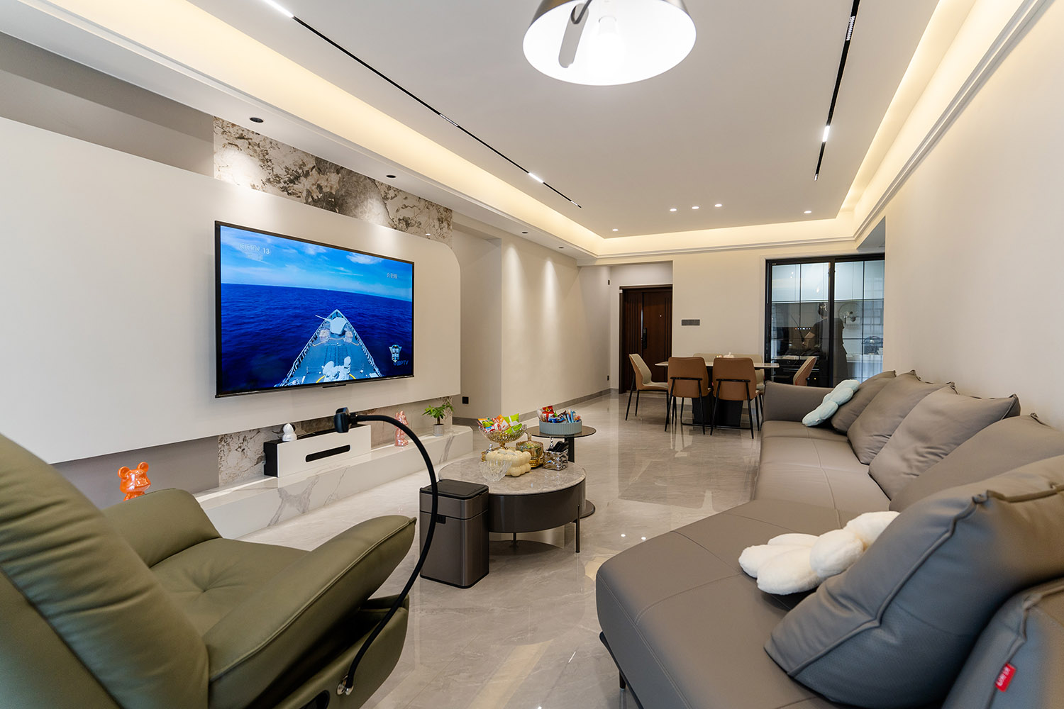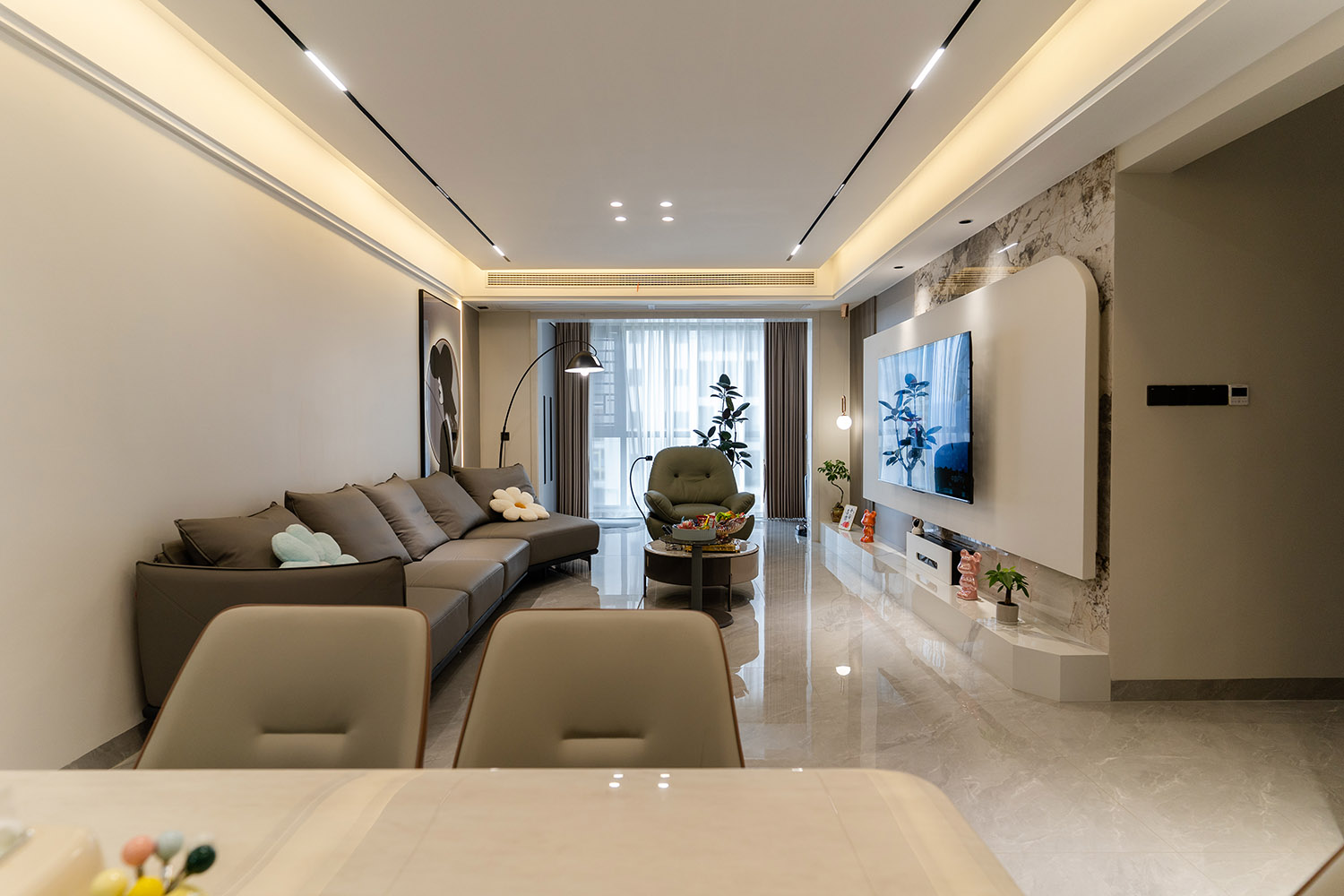 設(shè)計理念:簡而不減,功能至上 本案的核心設(shè)計理念是 “簡于形,精于心” 。旨在通過精準(zhǔn)的布局、一體化的定制和克制的裝飾,實現(xiàn)功能性與美學(xué)的完美平衡。設(shè)計拒絕為形式而形式,每一處都回歸到居住的本質(zhì)需求,在滿足強大收納和流暢動線的基礎(chǔ)上,通過材質(zhì)、光影和線條的細(xì)微變化,營造出一個兼具理性邏輯與感性溫度的現(xiàn)代家園。 現(xiàn)代簡約風(fēng)格以其簡潔的形態(tài)、實用的功能與克制的表達(dá),成為打造理想家的經(jīng)典選擇。它剝離冗余裝飾,強調(diào)空間本身的結(jié)構(gòu)美與生活其中的舒適度。本案以中海學(xué)府里124平方米的三居室為載體,深入解析如何通過現(xiàn)代設(shè)計手法,在有限面積內(nèi)實現(xiàn)功能、美感與開闊感的最大化平衡,打造一個高效、明亮、宜居且充滿細(xì)節(jié)品質(zhì)的現(xiàn)代居所。