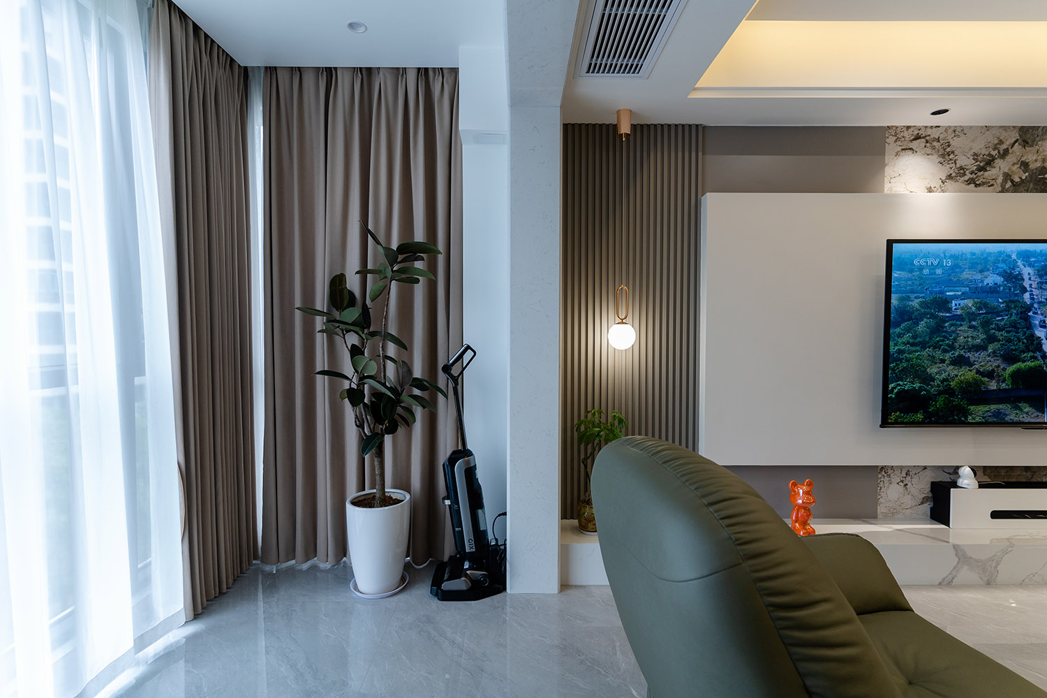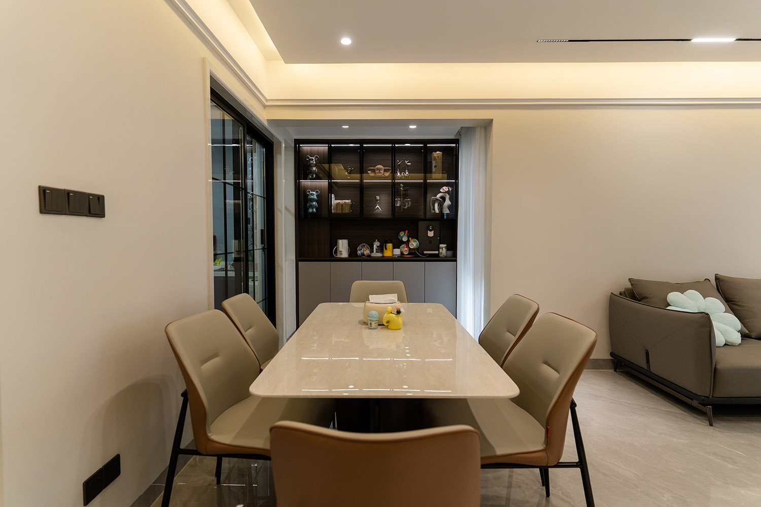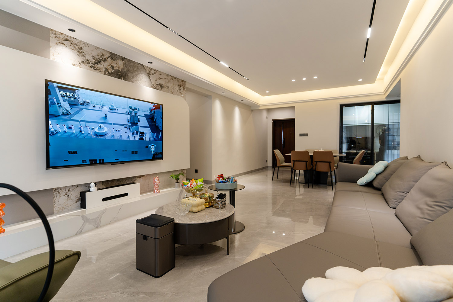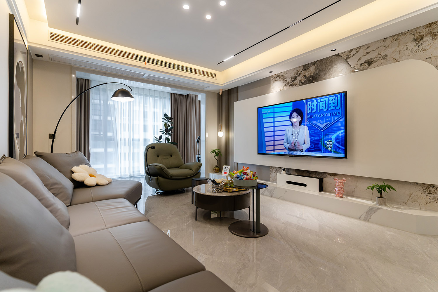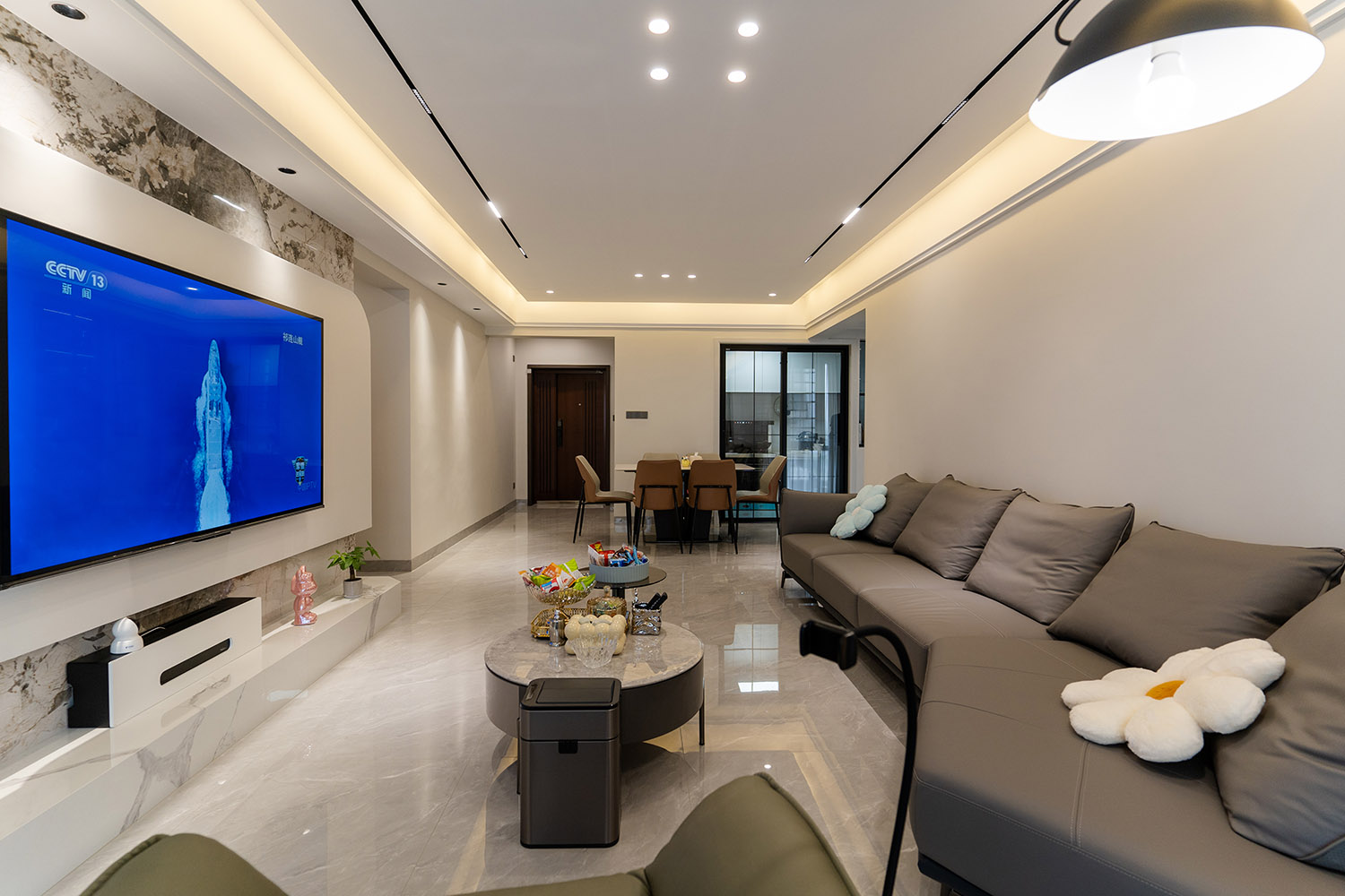 設(shè)計理念:簡而不減,功能至上 本案的核心設(shè)計理念是 “簡于形,精于心” 。旨在通過精準(zhǔn)的布局、一體化的定制和克制的裝飾,實現(xiàn)功能性與美學(xué)的完美平衡。設(shè)計拒絕為形式而形式,每一處都回歸到居住的本質(zhì)需求,在滿足強大收納和流暢動線的基礎(chǔ)上,通過材質(zhì)、光影和線條的細(xì)微變化,營造出一個兼具理性邏輯與感性溫度的現(xiàn)代家園。 現(xiàn)代簡約風(fēng)格以其簡潔的形態(tài)、實用的功能與克制的表達(dá),成為打造理想家的經(jīng)典選擇。它剝離冗余裝飾,強調(diào)空間本身的結(jié)構(gòu)美與生活其中的舒適度。本案以中海學(xué)府里124平方米的三居室為載體,深入解析如何通過現(xiàn)代設(shè)計手法,在有限面積內(nèi)實現(xiàn)功能、美感與開闊感的最大化平衡,打造一個高效、明亮、宜居且充滿細(xì)節(jié)品質(zhì)的現(xiàn)代居所。
