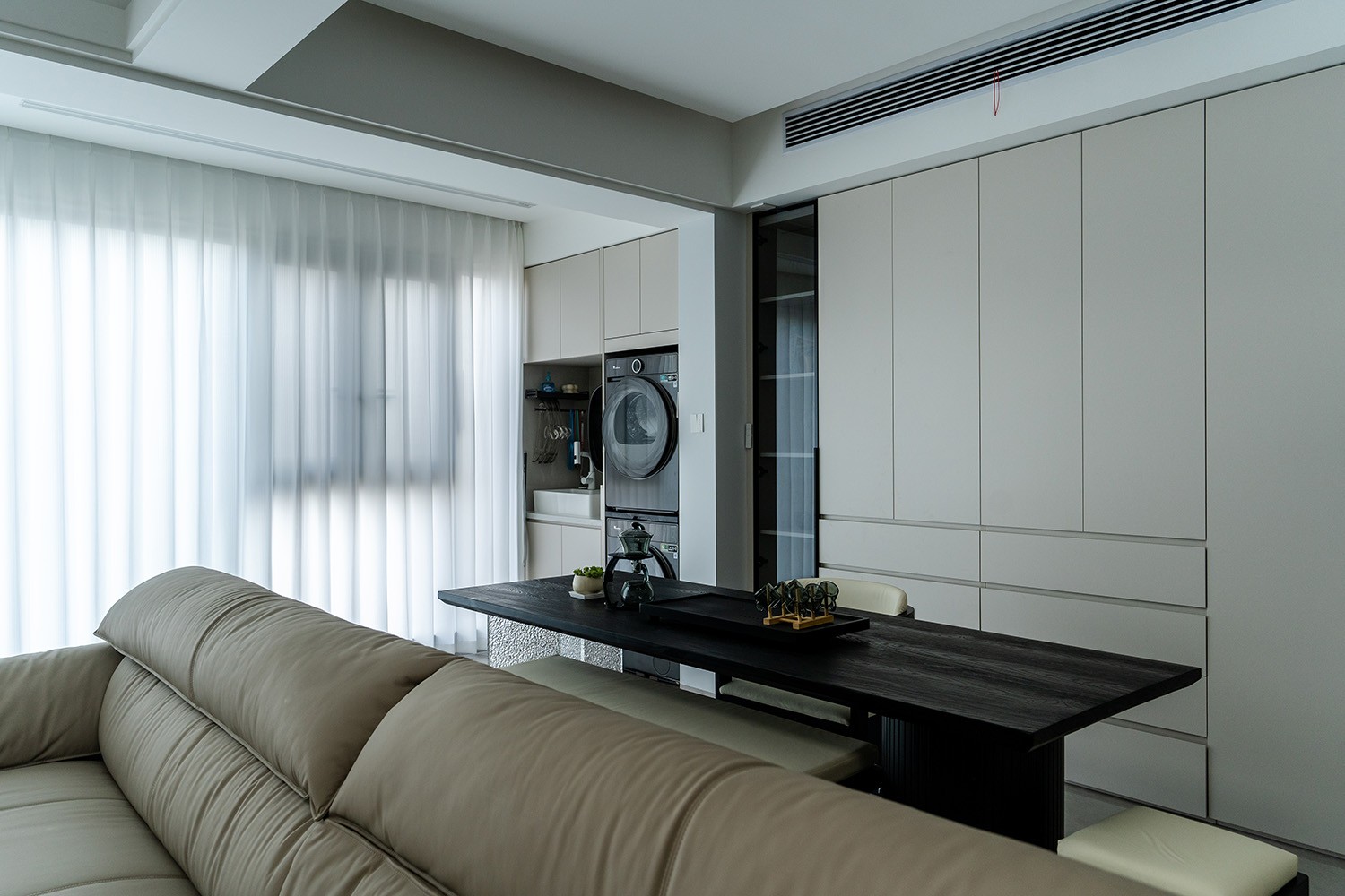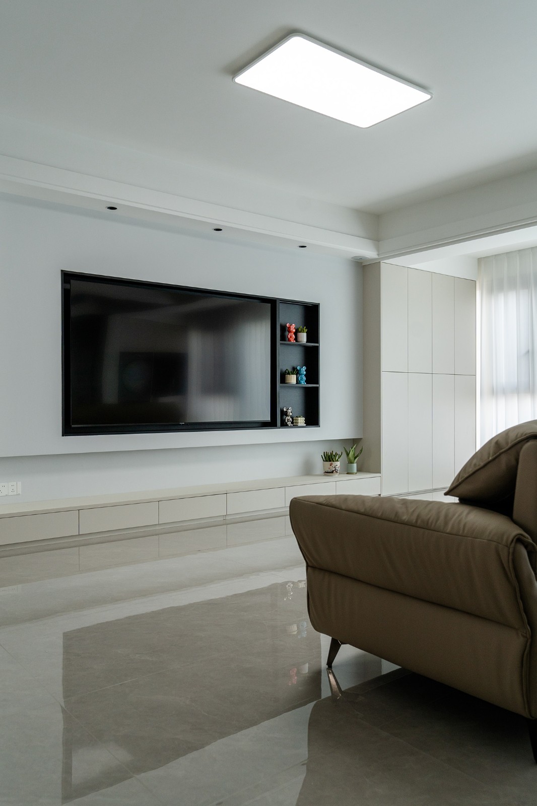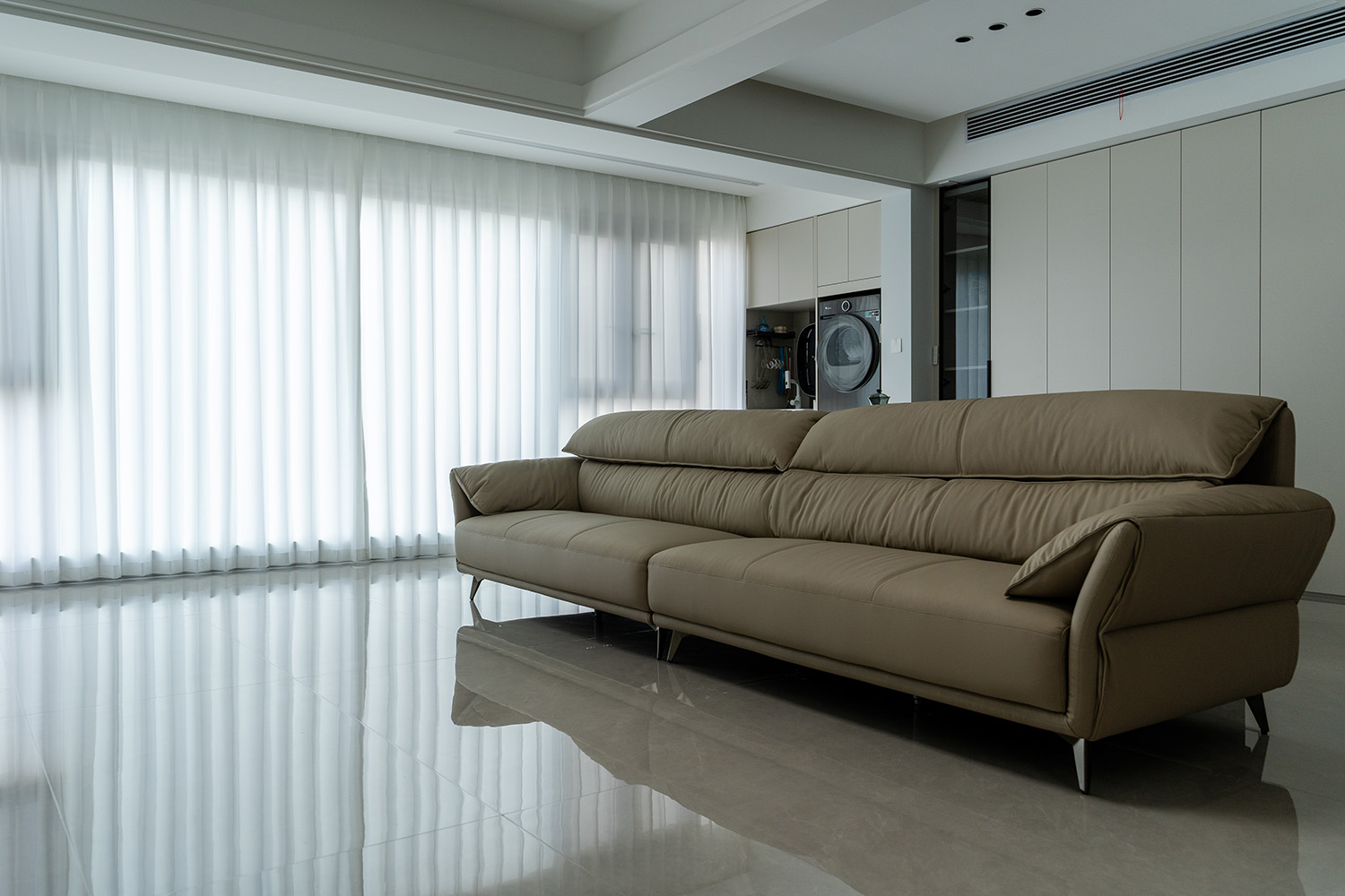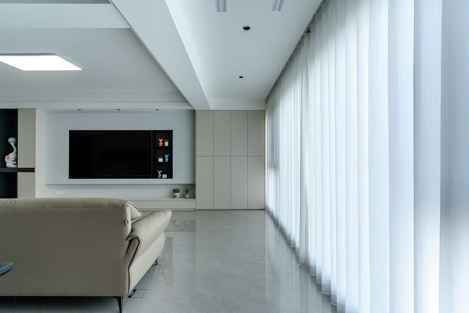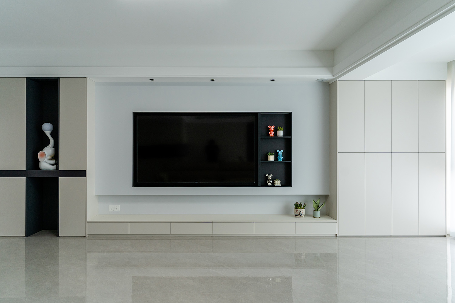 中海譽(yù)園130平米現(xiàn)代風(fēng)格的核心在于 “簡于形,精于心” 。現(xiàn)代風(fēng)格強(qiáng)調(diào)功能至上,摒棄冗雜裝飾,通過線條、色彩和材質(zhì)的巧妙搭配,打造出理性且溫馨的居住空間。對(duì)于130平米的三居室戶型,關(guān)鍵在于平衡開闊感與實(shí)用性,讓空間既有大宅的氣度,又不失生活的溫度。 本案的設(shè)計(jì)理念超越了單純的功能滿足,更注重空間的產(chǎn)品價(jià)值和情感體驗(yàn)。設(shè)計(jì)師通過打通陽臺(tái)納入客廳,實(shí)現(xiàn)客廳、餐廳、廚房、陽臺(tái)的無墻化直視交流,這種通透開敞的居住方式極大地提升了空間體驗(yàn)感。超大面寬的落地玻璃窗帶來的采光和無邊的景觀體驗(yàn),讓多樣化生活場景流暢轉(zhuǎn)換,共同構(gòu)筑出一方高質(zhì)量的居住天地。