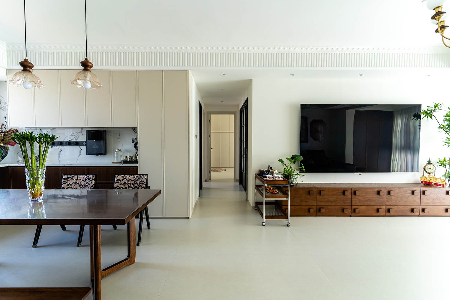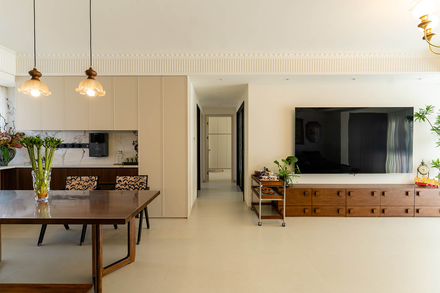 從審美角度看,這套設(shè)計(jì)成功實(shí)現(xiàn)了經(jīng)典與創(chuàng)新的平衡。它既有中古風(fēng)格的厚重質(zhì)感,又有現(xiàn)代設(shè)計(jì)的簡(jiǎn)約線條;既能滿足懷舊情感的需求,又能提供當(dāng)代生活的舒適體驗(yàn)27。在這個(gè)140㎡的空間里,設(shè)計(jì)師用專業(yè)與創(chuàng)意,為業(yè)主打造了一個(gè)真正意義上的"永恒之家"——一個(gè)能讓人在快節(jié)奏生活中找到內(nèi)心平靜的美學(xué)棲居。
