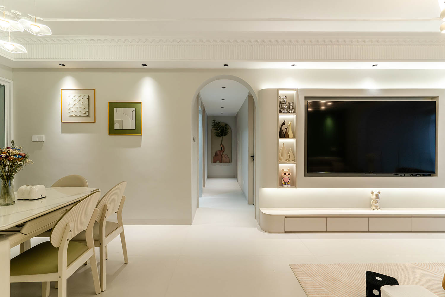 從審美角度看,這套設計成功實現(xiàn)了網(wǎng)紅元素與經(jīng)典氣質(zhì)的平衡。它既有奶油風的溫柔治愈,又有現(xiàn)代風格的簡約利落;既能滿足社交展示的需求,又能提供私密舒適的個人空間。在這個125㎡的方寸之間,設計師用專業(yè)與創(chuàng)意,為業(yè)主打造了一個真正意義上的"理想家"——一個能讓人卸下疲憊、重獲能量的溫暖港灣